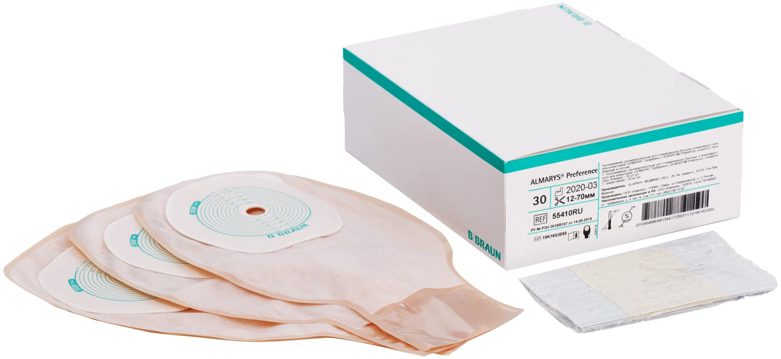 55410RU Калоприемник однокомпонентный дренируемый со встроенной плоской пластиной 10-70 мм Bbraun